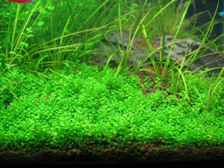 Меристемное растение Хемиантус каллитрихоидес "Куба" (Hemianthus callitrichoides "Cuba") — одно из самых маленьких и быстрорастущих почвопокровных растений, которое идеально подходит для создания зелёных ковров на переднем плане аквариума. С высотой всего 3-5 см, это растение быстро формирует плотный и эффектный зелёный покров, который выглядит особенно красиво, когда на его листьях появляются пузырьки кислорода.