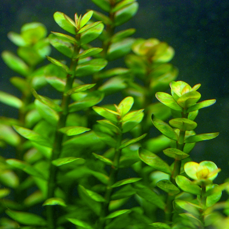 Яркая разновидность роталы с насыщенной окраской верхушек. При интенсивном освещении листья приобретают выразительные розово-красные и оранжевые оттенки, создавая эффектный цветовой акцент в аквариуме. В групповой посадке формирует плотные, аккуратные кусты с тонкой текстурой листвы.